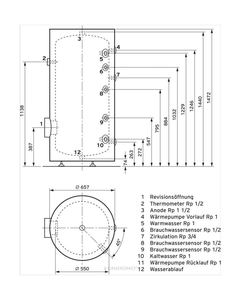 | Speicherdurchmesser ohne Isolierung | 550 mm |