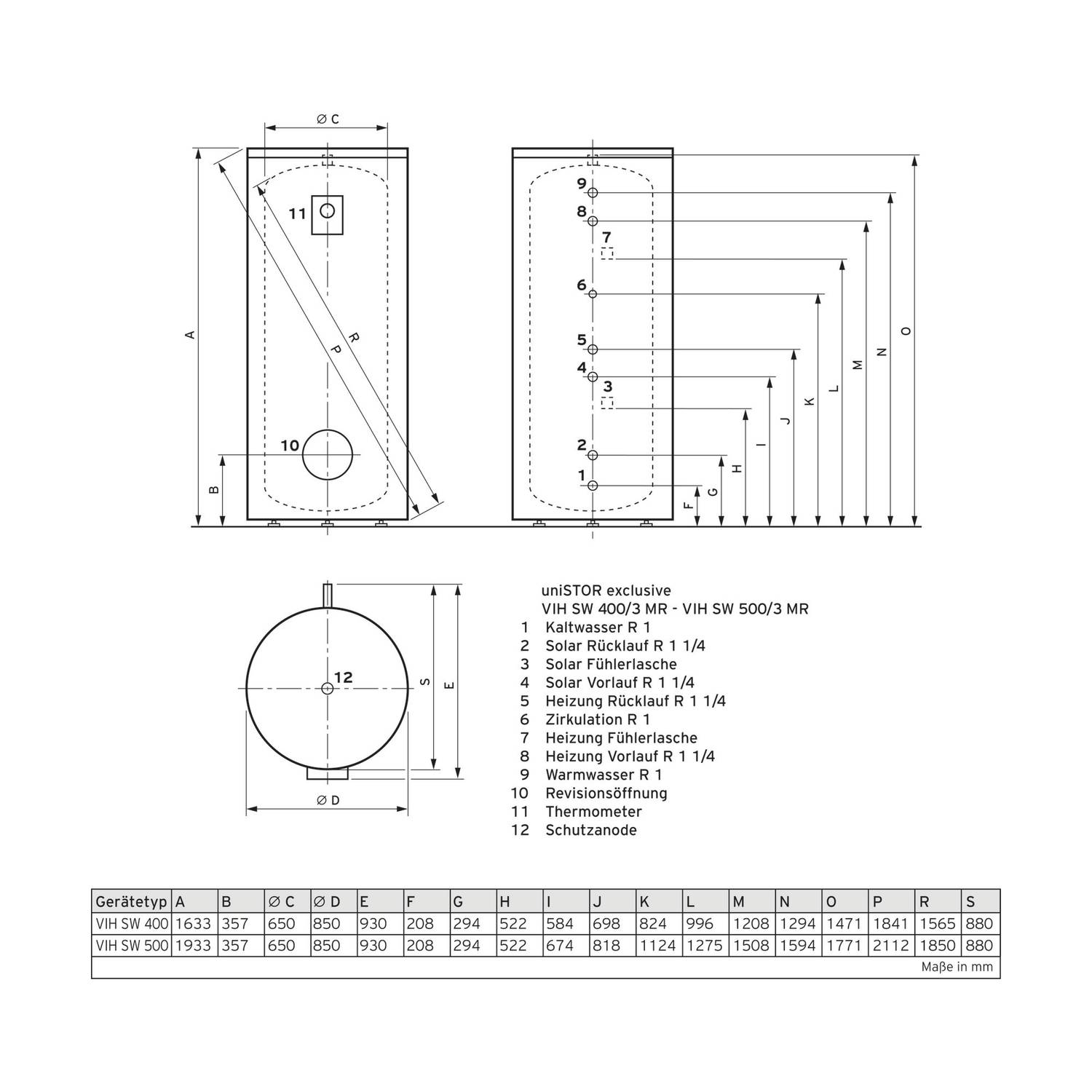 uniSTOR excl. VIH SW 500/3 MR Solar-Warmwasserspeicher für die Kombination mit Wärmepumpen