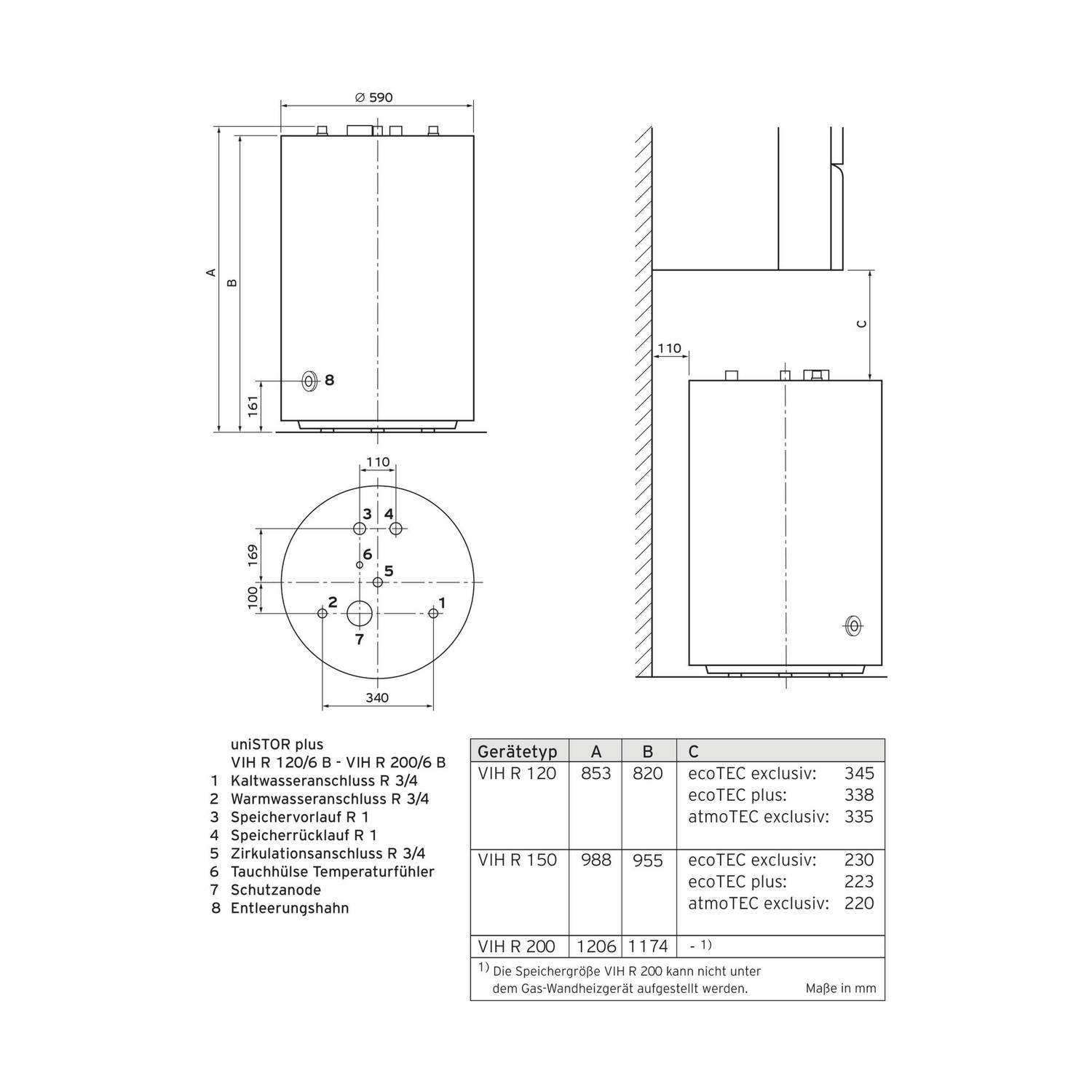 Vaillant uniSTOR VIH R 120/6 B Warmwasser-Speicher 117 Liter rund stehend