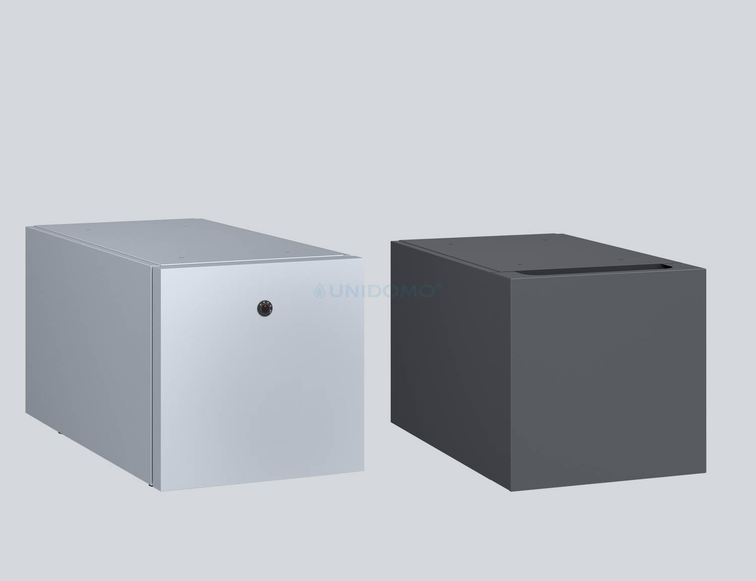 - Ummantelung aus Stahlblech, Farbe Viessmann vitosilber.
