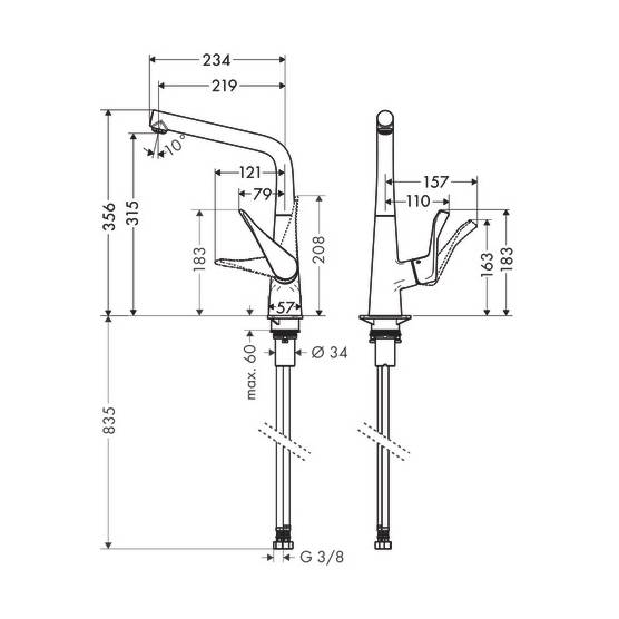 Hansgrohe Küchenarmatur Metris 320 Schwenkauslauf
