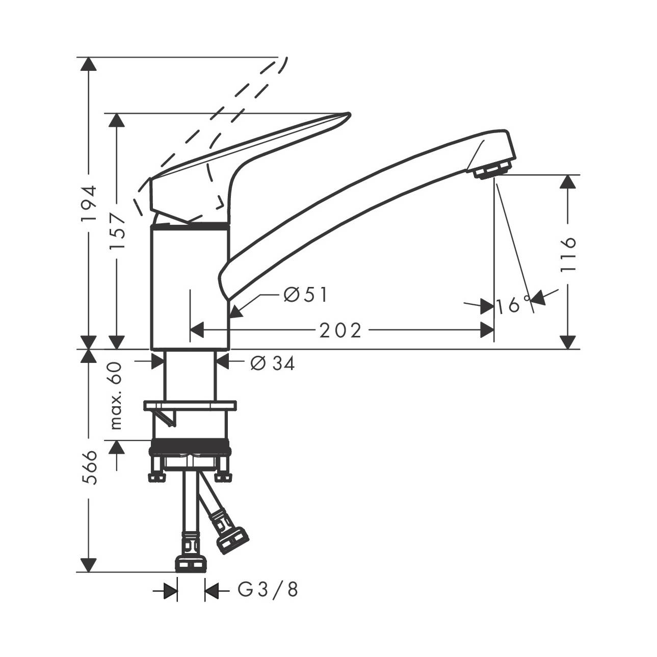 - Anschlussart: G 3/8 Zoll Anschlussschläuche