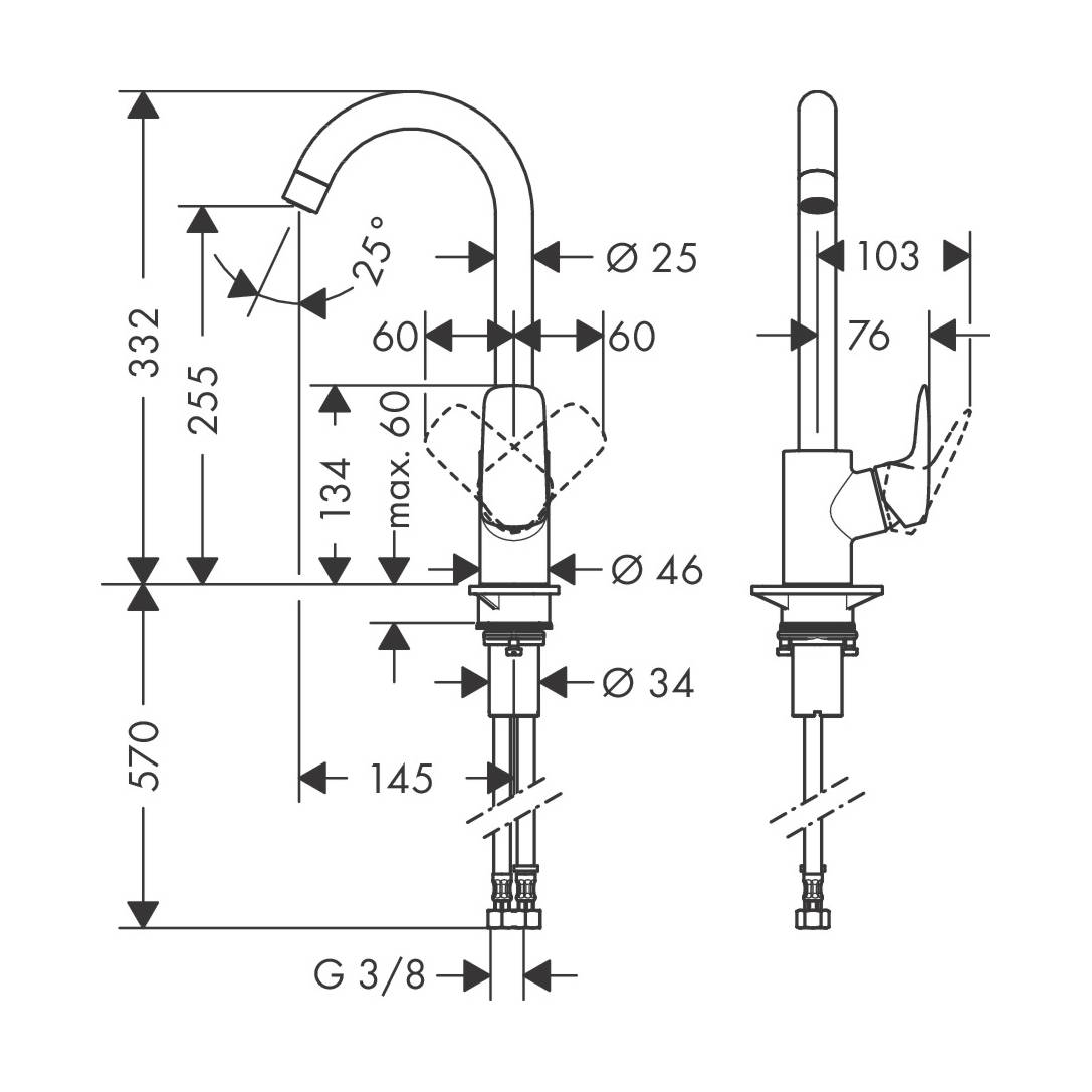 - Anschlussart: G 3/8 Zoll Anschlussschläuche