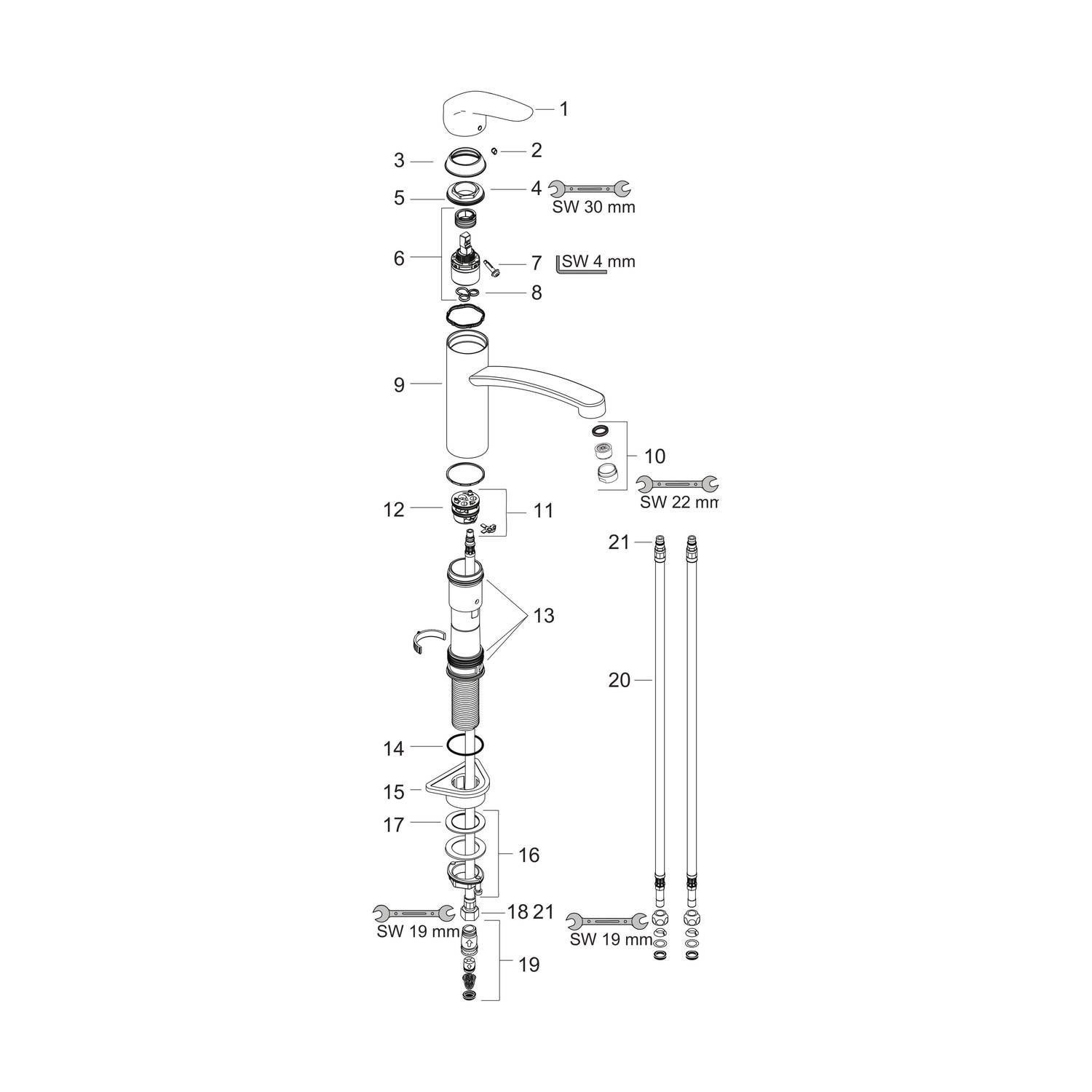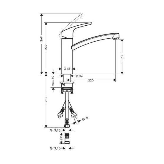- Anschlussart: G 3/8 Zoll Anschlussschläuche
