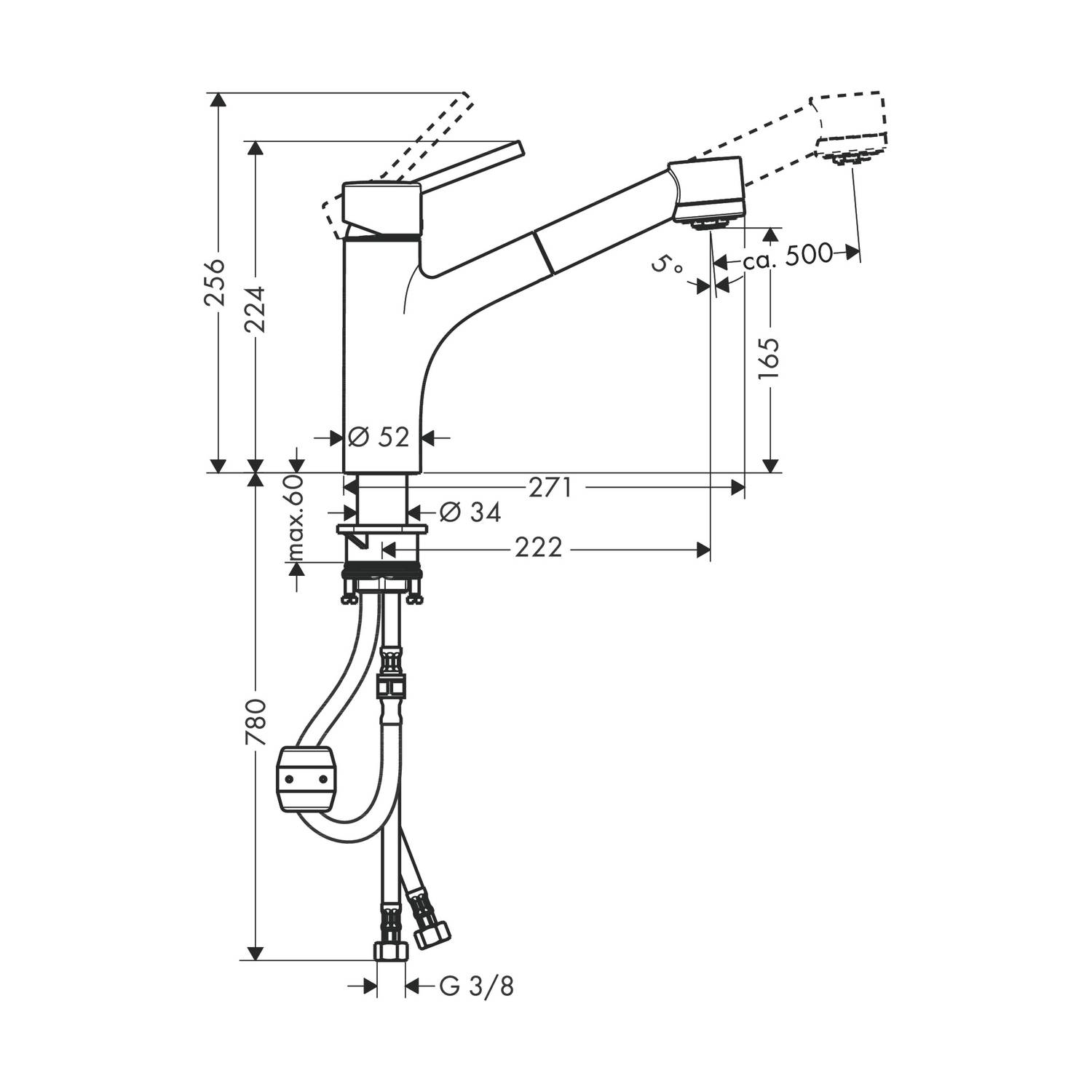 - Anschlussart: G 3/8 Zoll Anschlussschläuche