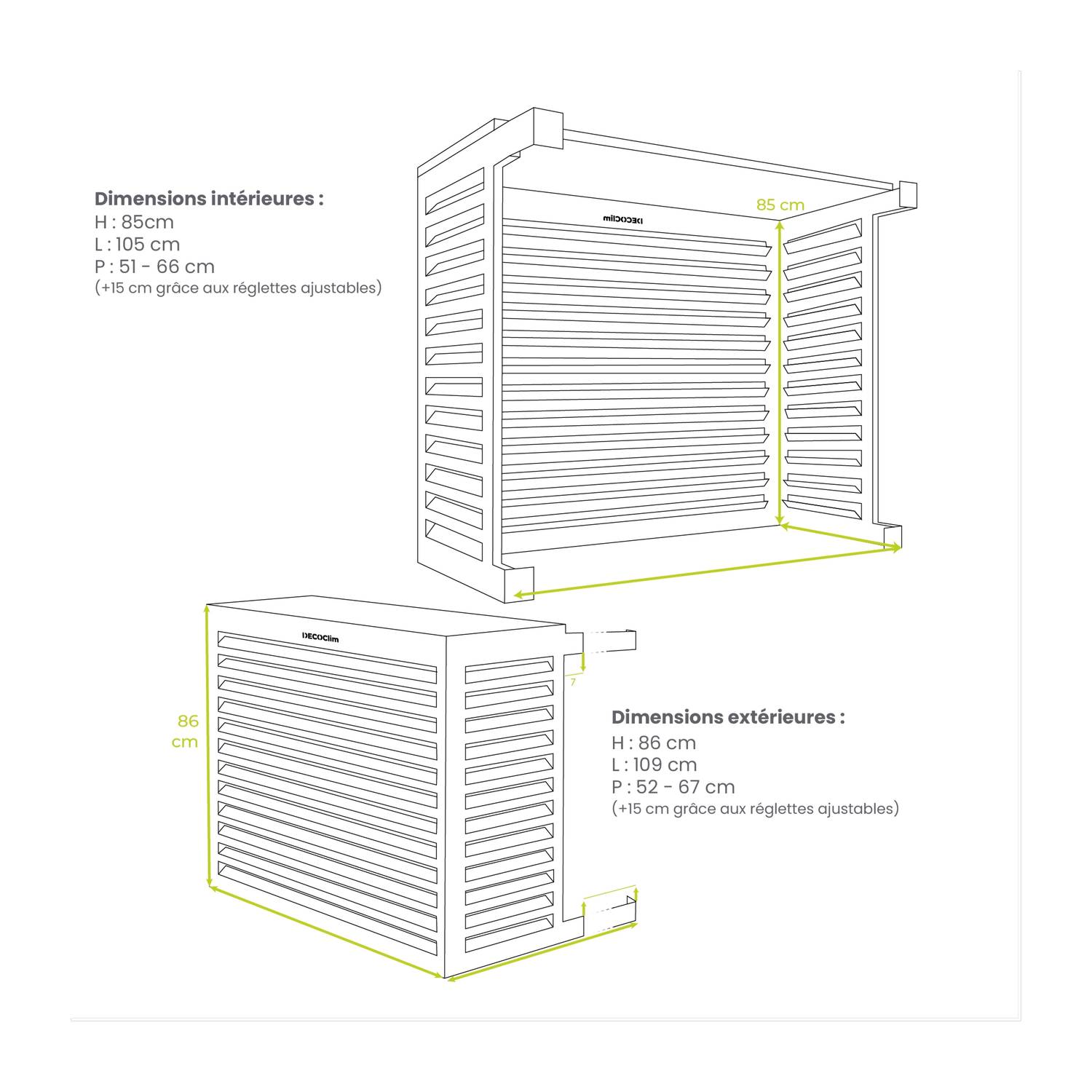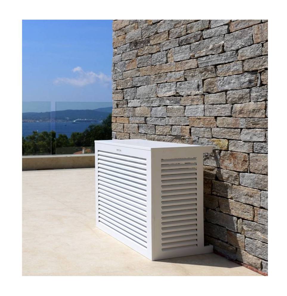Die DECOCLIM Abdeckungen aus hochwertigem Aluminium sind die ideale Lösung, um Außengeräte von Wärmepumpen oder Split-Klimaanlagen sicher und optisch ansprechend zu verkleiden. Jede Abdeckung wird vollständig in Frankreich gefertigt und überzeugt durch eine robuste Konstruktion, wetterfeste Pulverbeschichtung und eine lange Lebensdauer.