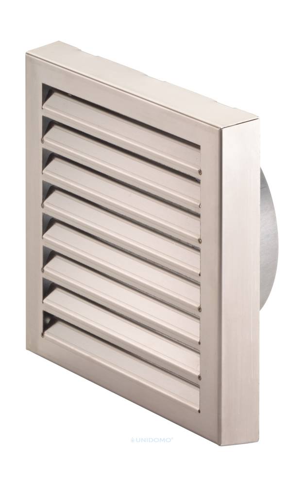 Die Lamellen und das sichtbare Gehäuse sind aus Edelstahl gefertigt, der Stutzen sowie die Rückseite des Kastens aus verzinktem Stahlblech. Um grobe Schmutzpartikel fernzuhalten ist das Gitter mit einem Vogelschutznetz (Maschenweite 10 mm) versehen. Das Gitter kann durch integrierte Befestigungsbohrungen im Frontrahmen befestigt werden. Befestigungsmaterial ist im Lieferumfang enthalten. Die Wanddurchführung sollte isoliert ausgeführt werden um eine Taupunktunterschreitung im Bauteil auszuschließen.