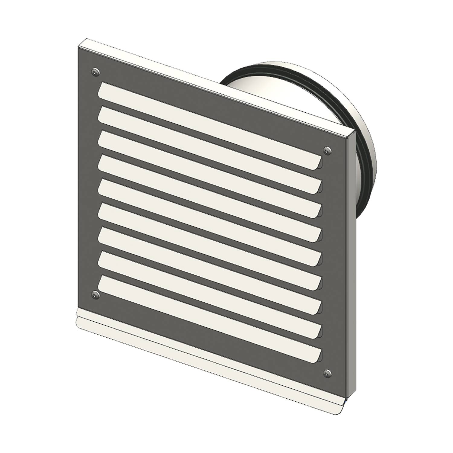 Außenwandblende Design Zum direkten Anschluss an EPP-Rohr. - Mit Vogelschutzgitter - Mit Abtropfkante - Edelstahl Bestell-Nr.: ZK05351