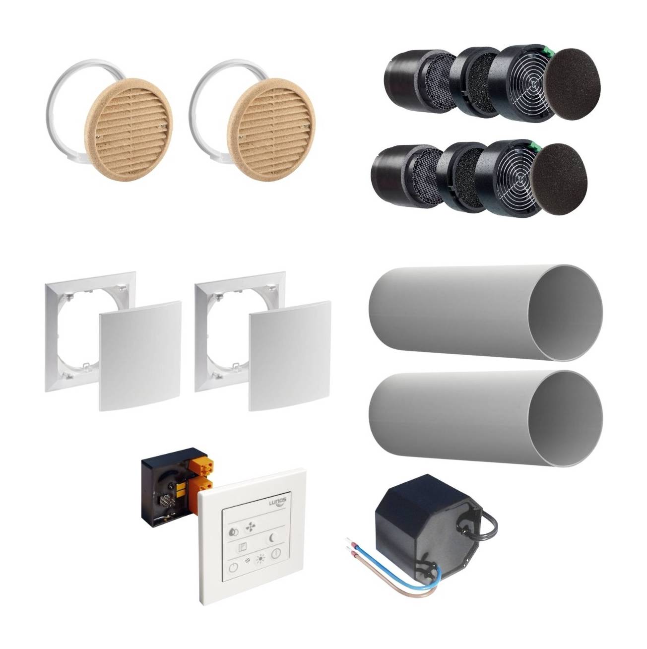 LUNOS e²60 2er-Set mit Rundrohr, Innenblende, Smart-Steuerung und Netzteil, Außengitter besandet