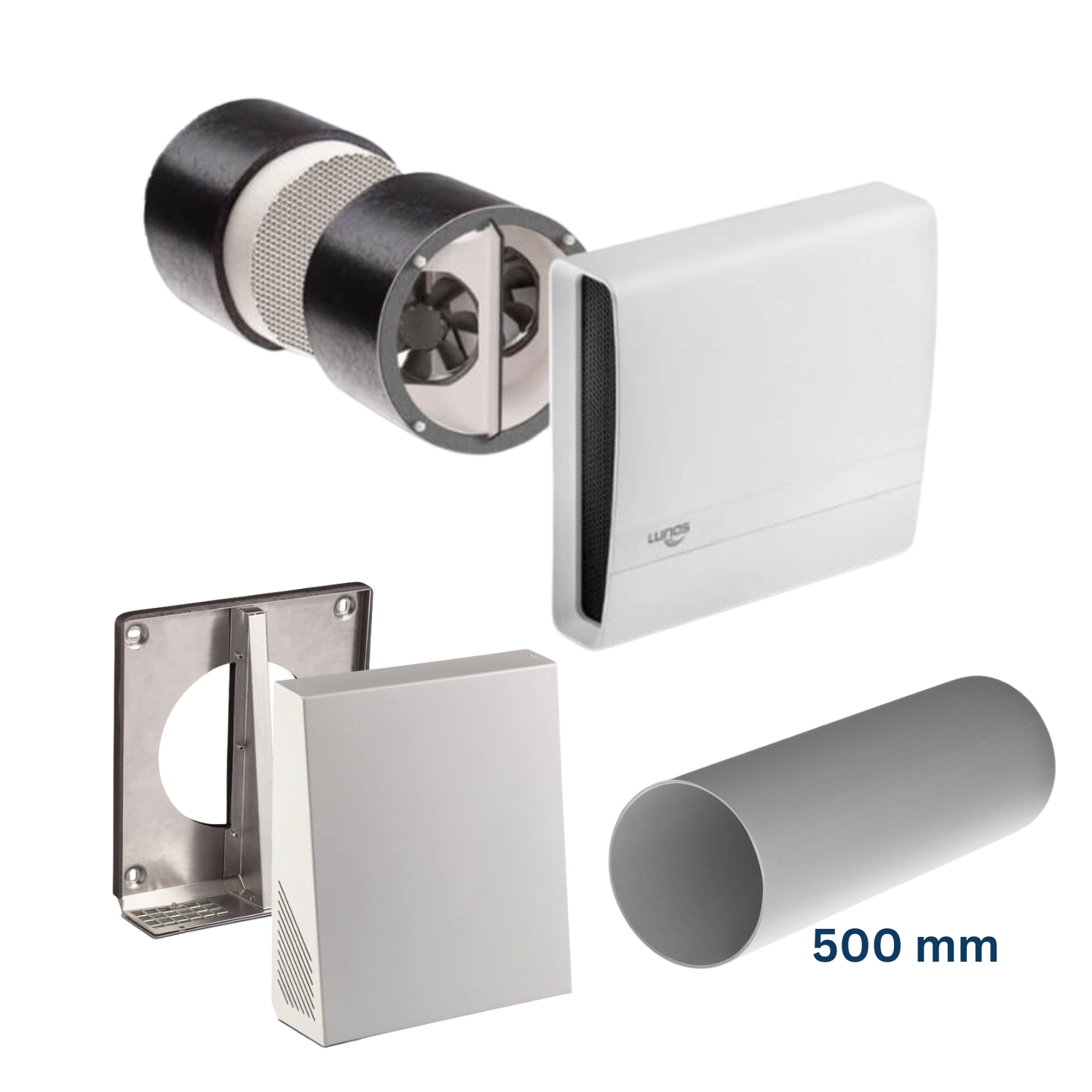 Lunos eGO Set dezentrale Lüftung für Bad und Küche mit Außenhaube und Rundrohr